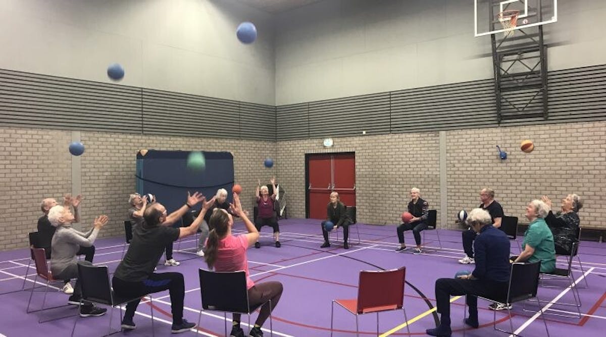Bewegen op de stoel, spelletjes, loopoefeningen, kracht en stabiliteit.