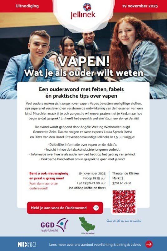 De avond wordt geopend door Angèle Welting Wethouder Jeugd Gemeente Zeist. Daarna volgen er twee experts Laura Sprock (Arts) en Ditza van den Hazel (Preventiedeskundige Jellinek).