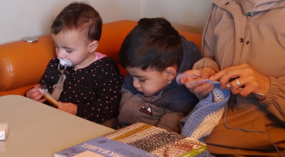 Aan de andere kant van de ruimte bevindt zich de grote breitafel. De verschillende kleuren wol rollen over de tafel terwijl er druk gebreid en gehaakt wordt. Tijdens het knutselen wisselt de grote groep dames de laatste nieuwtjes uit het dorp uit. ‘Er wordt hier vaak wel meer gekletst dan gewerkt,’ lacht een van de dames, terwijl ze stevig door blijft haken. ‘Al kan het soms ook wel echt muisstil zijn, dan is iedereen juist heel druk bezig.’ De leeftijden aan de breitafel variëren. Van oudere dames en jonge kindjes, tot nieuwe inwoners van Odijk die opzoek zijn naar een praatje om de Nederlandse taal beter te leren.