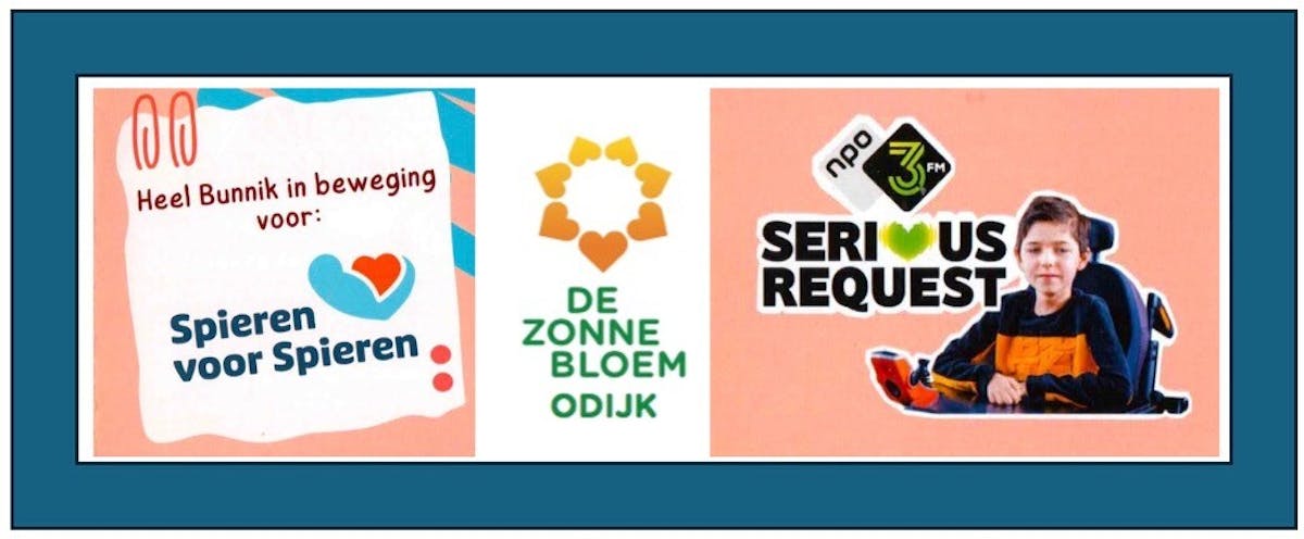 Heel Bunnik beweegt. Deze weken wordt een druk bewogen door onze jeugd voor de actie Serious Request 2025. Doel dit jaar zo veel mogelijk geld in te zamelen voor Spieren voor Spieren. Maar ook als volwassenen/ouderen in onze gemeente kunnen we bewegen voor het goede doel. Woensdag  3 december om 15:00 uur bij de kantine van vv Odijk. Deelnemers van de Zonnebloem geven het goede voorbeeld. Maar iedereen kan nog aansluiten. Laat je sponsoren voor wandelen, fietsen, stoelgymmen! DOE OOK MEE!